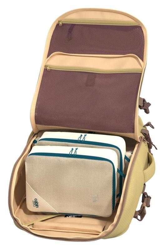 Uvnitř najdete síťované kapsy pro lepší organizaci drobností. Ramenní popruhy i bederní popruh lze snadno skrýt, což oceníte například při přepravě v letadle. Pro pohodlnou manipulaci je k dispozici popruh, který umožňuje připevnění batohu na výsuvné madlo cestovního kufru.