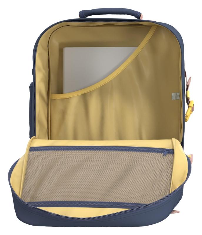 Batoh je vybavený horným a bočným držadlom, čo uľahčuje manipuláciu a prenášanie v ruke. Na prednej strane nájdete vrecko na zips vhodné na drobnosti, vo vnútri je navyše sieťované vrecko a látkové vrecko na zips pre lepšiu organizáciu vecí.