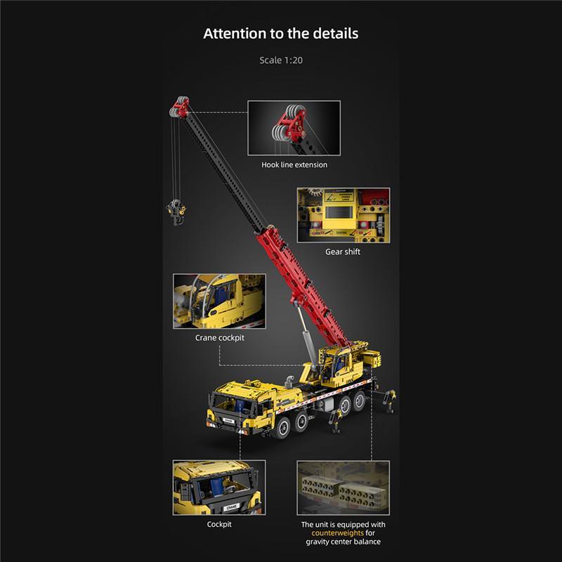 RC stavebnica žeriavu prináša veľa zábavy a možností vďaka svojmu prepracovanému dizajnu a funkčným prvkom. Zostavenie modelu z 1831 dielikov rozvíja kreativitu a technické zručnosti. Stavebnica obsahuje mechanické prevody a ovládateľné kolesá, ktoré umožňujú realistický pohyb žeriavu. Model má rozmery: dĺžka 610 mm, šírka 180 mm a výška 170 mm, čo zaručuje stabilitu a detailné spracovanie.