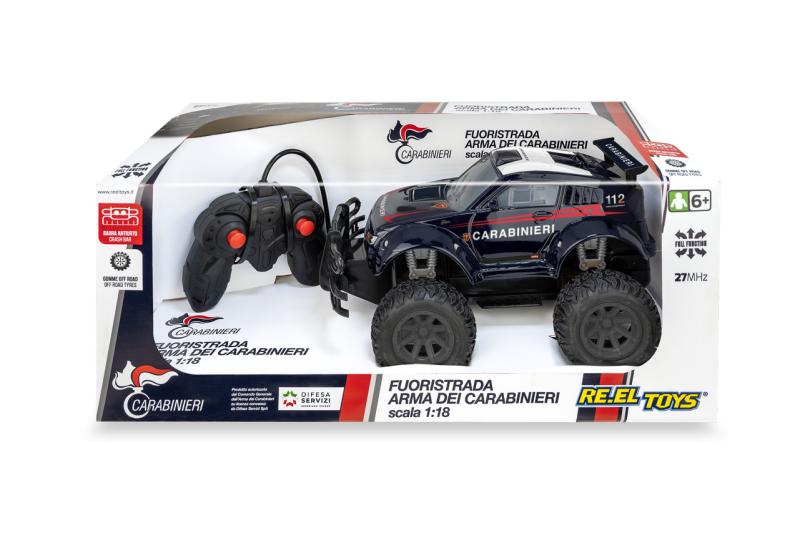 Terénní policejní vozidlo s oficiální licencí Carabinieri v měřítku 1:16, vybavené velkými pneumatikami a rádiovým ovládáním 27 MHz. Zobrazit celý popis