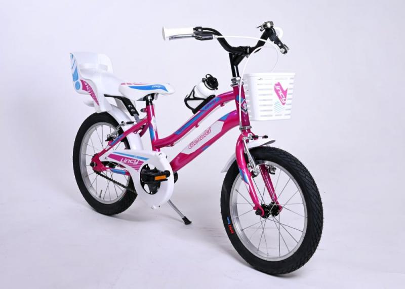 Dětské kolo Casadei Lincy 16 je nádherné dívčí kolo s praktickými doplňky, které vykouzlí úsměv na tváři každé malé princezny. Kolo má 16palcová nafukovací kola s kovovými ráfky a kvalitními plášti. Kolo je určeno pro děti s výškou výškou postavy od 105 cm.Kolo má kvalitní ocelový rám a nádherný lak, který okamžitě získá pozornost všech kolemjdoucích. Na řídítkách najdete ergonomické protiskluzové rukojeti, zvonek a dvě ruční páčkové brzdy, jejichž velikost je přizpůsobena pro malé dětské ruce. Pohodlné polstrované sedlo je výškově nastavitelné. Díky částečně uzavřenému krytu řetězu si děti nezašpiní kalhoty a nehrozí zachycení oděvu do ozubeného kola. Součástí balení je držák s láhví na pití, které ocení každá malá cyklistka. Děti potěší také praktický stojan, díky kterému nemusí kolo pokládat na zem. Součástí kola je také praktický košík pro převážení nejrůznějších věcí a box vzadu za sedlem (Pozor, na fotografii produktu je zobrazena sedačka pro panenky, ale kolo je dodáváno s plastovým úložným boxem místo sedačky). Kolo obdržíte v přepravním kartonu, kdy kolo je již z výroby z 95 % předem smontováno. Po vybalení z kartonu stačí provést tyto jednoduché kroky, které vám nezaberou více než 30 minut: narovnání řídítek, montáž pedálů a doplňků ke kolu.
