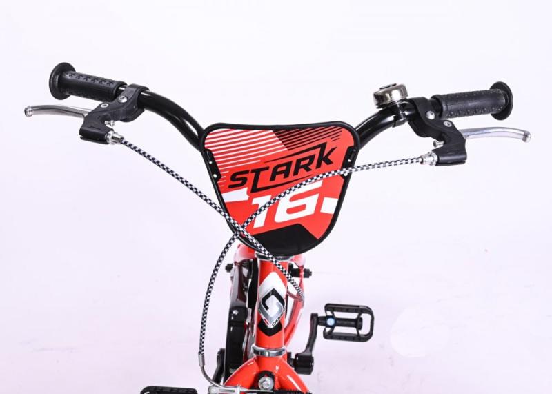 Dětské kolo Casadei Stark 16 je nádherné chlapecké kolo typu BMX, které vykouzlí úsměv na tváři každého malého závodníka. Kolo má 16palcová nafukovací kola s kovovými ráfky a díky kvalitním plášťům s 3D vzorkem můžete vzít vaše kolo i do terénu. Kolo je určeno pro děti s výškou výškou postavy od 105 cm.Kolo má kvalitní ocelový rám typu BMX a nádherný lak, který okamžitě získá pozornost všech kolemjdoucích. Na řídítkách najdete ergonomické protiskluzové rukojeti, zvonek a dvě ruční páčkové brzdy, jejichž velikost je přizpůsobena pro malé dětské ruce. Pohodlné polstrované sedlo je výškově nastavitelné. Díky částečně uzavřenému krytu řetězu si děti nezašpiní kalhoty a nehrozí zachycení oděvu do ozubeného kola. Součástí balení je držák s láhví na pití, které ocení každý malý cyklista. Děti potěší také praktický stojan, díky kterému nemusí kolo pokládat na zem. Kolo obdržíte v přepravním kartonu, kdy kolo je již z výroby z 95 % předem smontováno. Po vybalení z kartonu stačí provést tyto jednoduché kroky, které vám nezaberou více než 30 minut: narovnání řídítek, montáž pedálů a doplňků ke kolu.