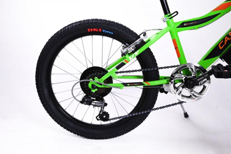 Kolo má kvalitní a přesnou 6stupňovou přehazovačku Shimano RevoShift od předního světového výrobce cyklokomponent Shimano. Jednoduchým pohybem ruky na řídítkách rychle a spolehlivě změníte převodový stupeň. Přehazovačka je na kole seřízena již z výroby. Kolo má přední a zadní velmi účinné brzdy V-brake, které se ovládají alu páčkami na řídítkách. Brzdy jsou již seřízené z výroby. Odpružená přední vidlice poskytuje dobrý jízdní komfort na všech površích. Tuhá konstrukce zaručí jezdci dokonalé vedení směru. Kolo má odlehčený rám z Hi-Ten oceli. Zadní kolo má kvalitní volnoběžku, tzv. "cvrčka". Ergonomicky tvarované sedlo je polstrované, výška sedla je nastavitelná (minimální výška sedla je 58 cm od země), lze ji snadno upravit pomocí rychloupínáku. Celková délka kola je 145 cm. Součástí výbavy je je stojan na kolo, zvonek a držák s láhví na pití.