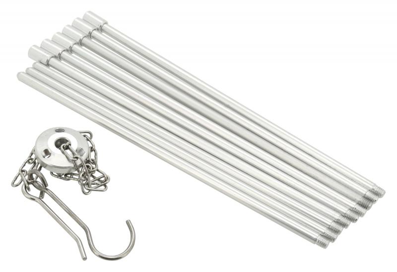 Výtečný pomocník pro zavěšení zátěže do 15 kg (kotlíků, konvic, apod.) nad ohněm. Závěs je opatřen řetízkem a zakončením, kterým je možné regulovat výšku samotného háku.