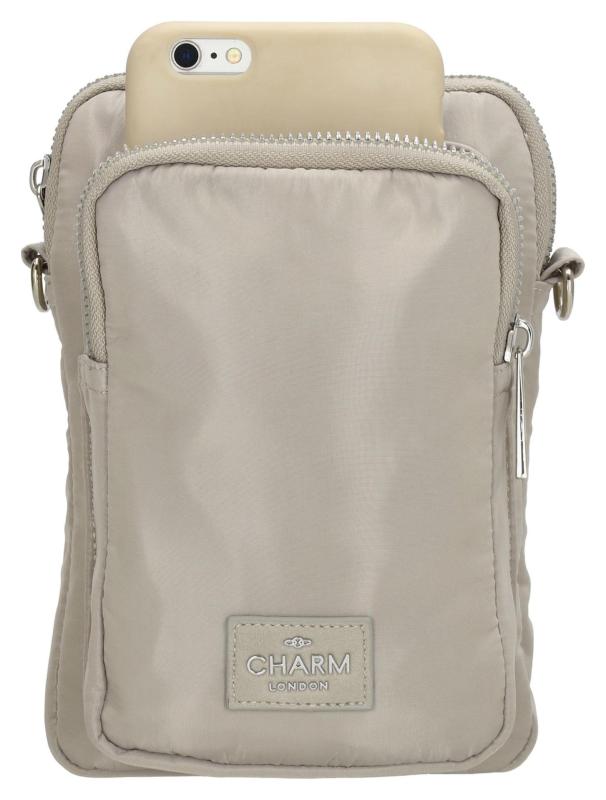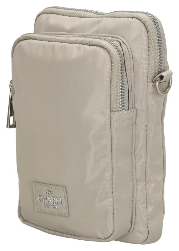Toto voděodolné pouzdro na telefon Charm London Odeon v barvě Light grey nabízí přední, hlavní a zadní kapsu na zip. Má odnímatelný a nastavitelný ramenní popruh.