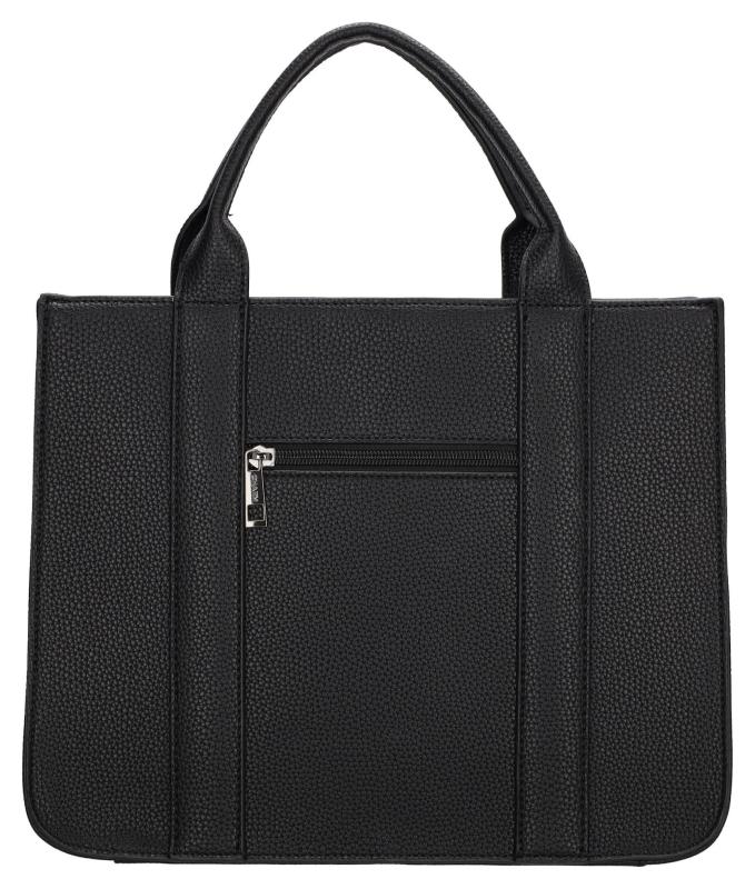 Tento nadčasový model spája štýl a funkčnosť, či už idete do práce, na stretnutie alebo na kávu s priateľmi. Jej univerzálna čierna farba ľahko doplní akýkoľvek outfit, a vďaka kvalitnej syntetickej koži je odolná a príjemná na dotyk. Pevné uši dodávajú kabelke klasický vzhľad, zatiaľ čo odnímateľný a nastaviteľný ramenný popruh umožňuje pohodlné nosenie v ruke aj cez rameno. Kovové detaily v decentnej farbe gun metal podčiarkujú elegantný charakter kabelky.