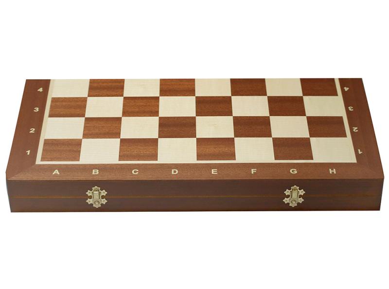Súčasťou dodávky je skladacia drevená šachovnica s popisom o rozmere 53x53. Je možné ju zložiť na rozmer 47x23,5x5,5 a dovnútra je možné uložiť všetky figúrky.