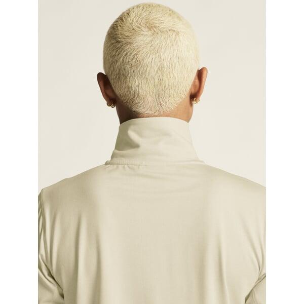 Tento rolák je vyroben z kombinace recyklovaného polyesteru a elastanu, což zajišťuje příjemný pocit na pokožce díky velmi jemnému chloupku na povrchu.