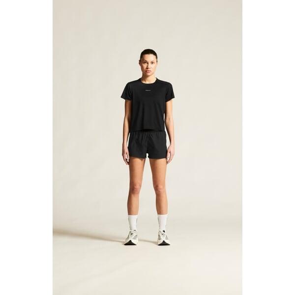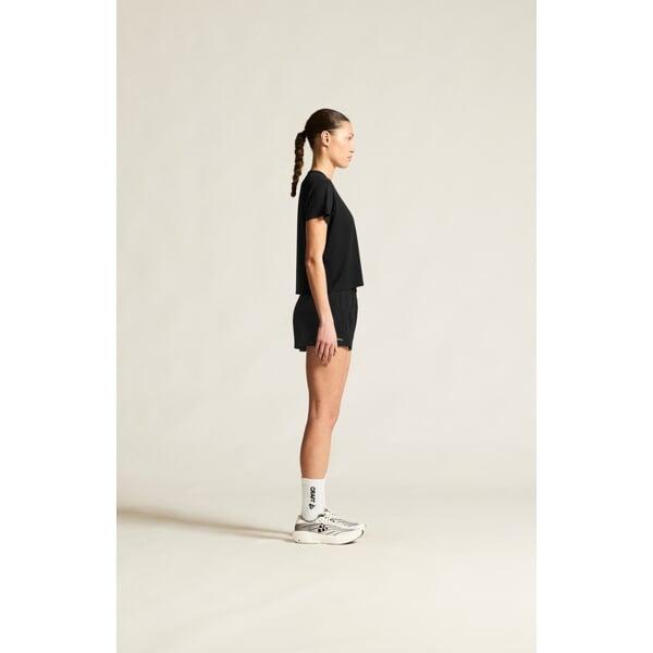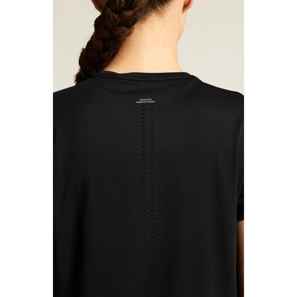 Materiál je složen z 93 % recyklovaného polyesteru a 7 % elastanu, což zajišťuje nejen pružnost do čtyř stran, ale také přispívá k udržitelnosti. Díky lepeným okrajům na rukávech, spodním lemu a průkrčníku je triko příjemné na dotek a odolné proti oděru.