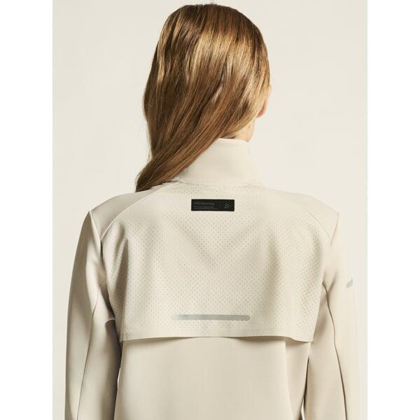Tato bunda je navržena tak, aby poskytovala optimální tepelný komfort během běhu v chladnějších dnech. Přední část je vybavena větruodolnou úpravou a izolací, která účinně chrání před nepříznivým počasím, zatímco zadní díl a rukávy jsou z elastického dvouvrstvého materiálu, který zajišťuje volnost pohybu a pohodlí.