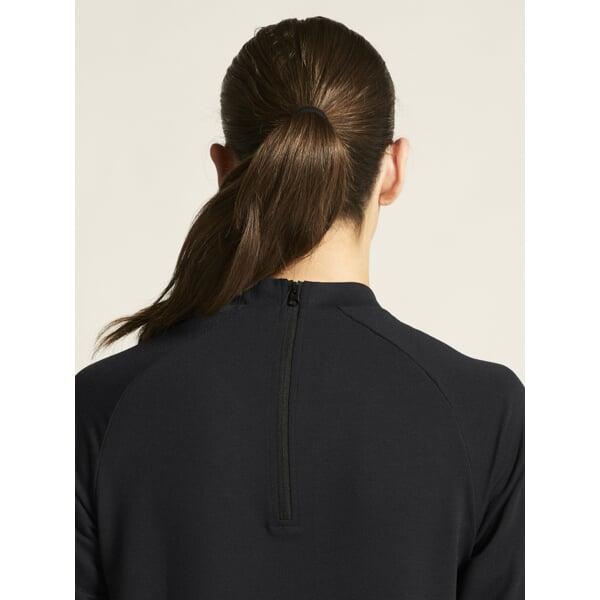 Voľný strih spolu s raglánovými rukávmi umožňuje maximálnu voľnosť pohybu, čo oceníte pri športe aj pri každodennom nosení. Praktickým prvkom je krátky zips v oblasti zátylku, ktorý uľahčuje obliekanie a zároveň slúži ako dizajnový detail.