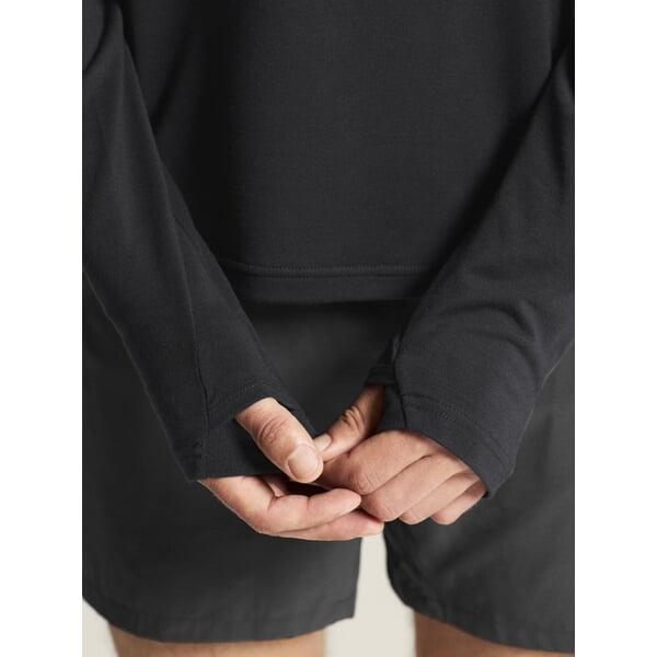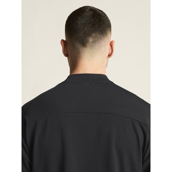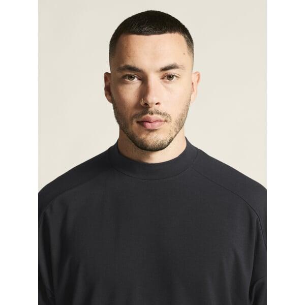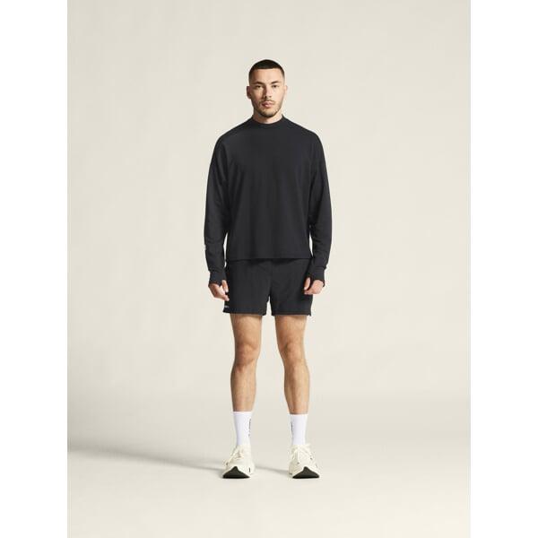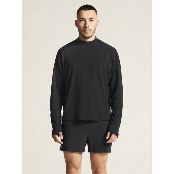Toto tričko kombinuje jednoduchý, ale atraktívny dizajn, ktorý umožňuje jeho využitie nielen pri bežeckých tréningoch, ale aj pri bežnom nosení. Materiál je zložený zo 70 % recyklovaného polyesteru, 26 % viskózy a 4 % elastánu, čo zabezpečuje príjemný pocit na tele a dostatočnú pružnosť pre pohodlný pohyb. Vnútorná strana je opatrená žebrovanou štruktúrou, ktorá zvyšuje funkčnosť a komfort nosenia tým, že lepšie udržiava teplo a odvádza vlhkosť. Praktickým prvkom sú otvory na palec na koncoch rukávov, ktoré pomáhajú udržať rukávy na mieste a chránia zápästie pred chladom. Voľný strih prispieva k pohodliu a neobmedzuje pohyb počas športových aktivít aj bežného nosenia.