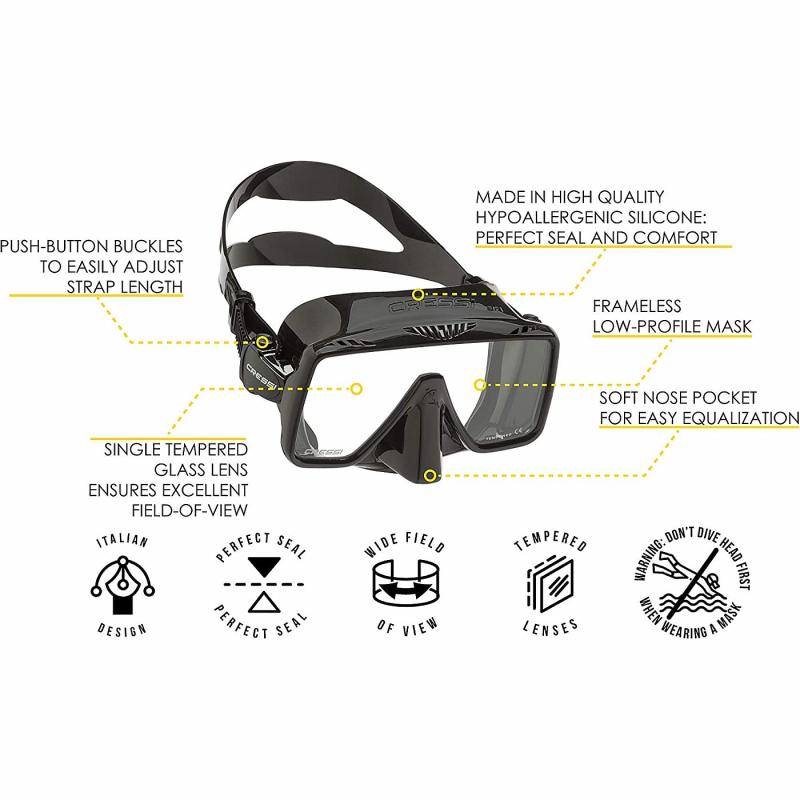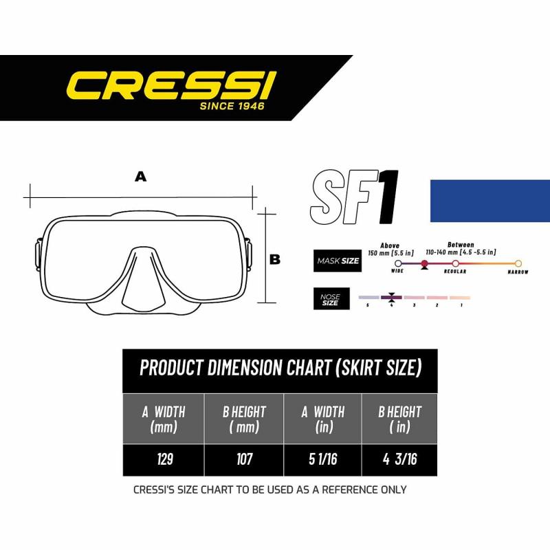 Novinka roku 2020. Cressi predstavuje svoje úplne nové potápačské masky SF1! Ide o hranatú jednozorníkovú masku, ktorá vychádza z modelu legendárneho modelu F1! Táto bezrámová maska na potápanie je vyrobená z kvalitného lesklého silikónu, a ponúka veľmi malý vnútorný objem masky.Veľmi robustný dizajn.