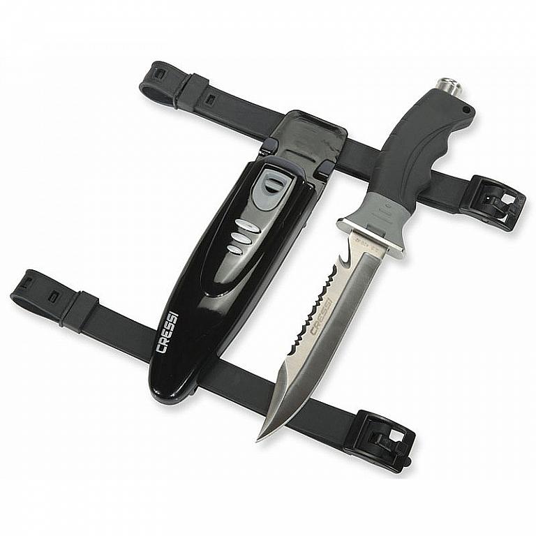 Potápěčský nůž Cressi Borg disponuje 26,8 cm a má trvanlivou tvrzenou ocelovou čepel AISI 420. Ocelový nůž na potápění má čepel dlouhou 14,5 cm. Háček umožňuje odříznout lanko nebo vlasec.