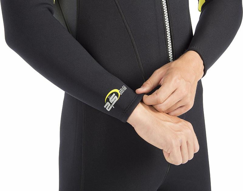 Použité manžety AquaStop na rukávoch a nohaviciach skvele tesnia a zabraňujú vniknutiu vody a dvojité lemovanie neoprénu odoláva kompresii v hĺbke.