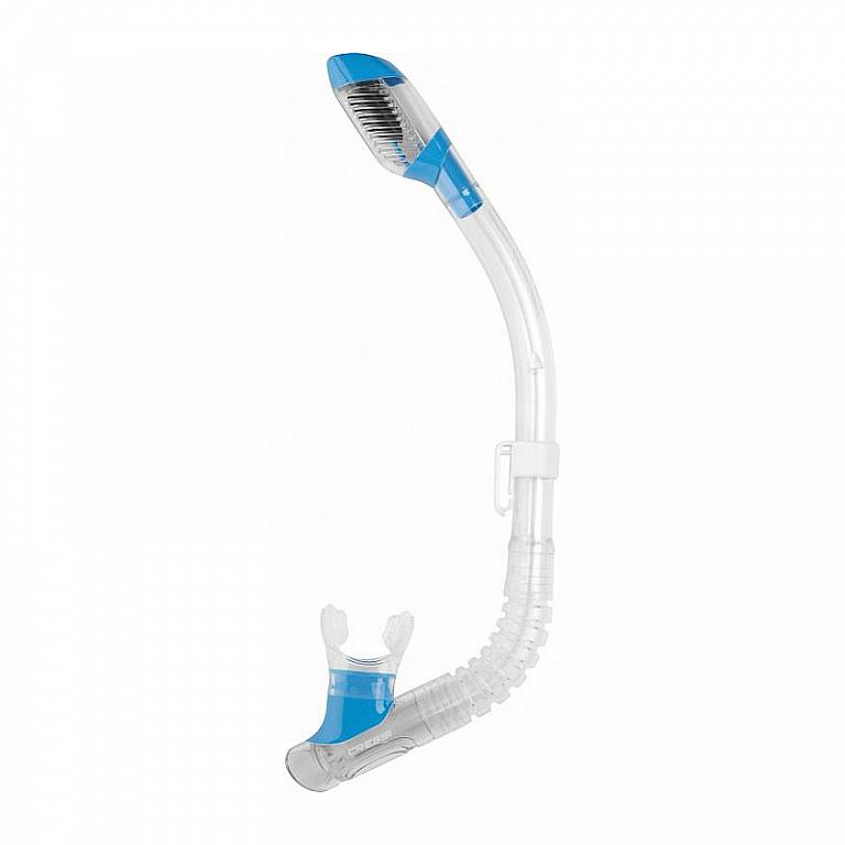 Šnorchel Mini Dry je vybavený originálnym protišmykovým zakončením so špeciálnym ventilom, ktorý utesňuje šnorchel pri potápaní.