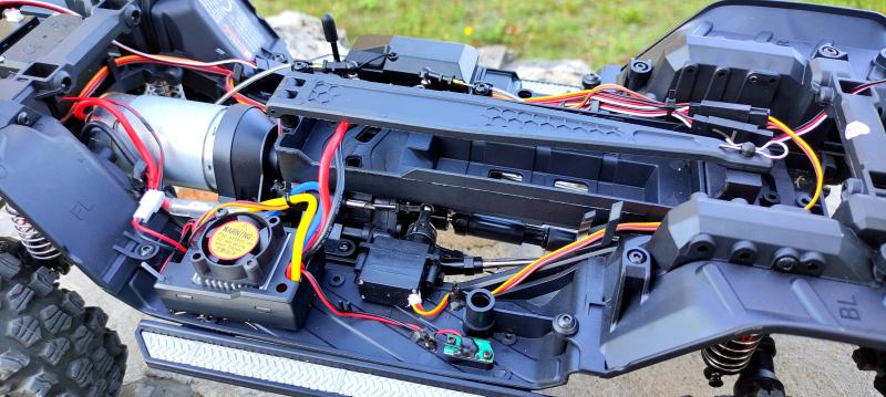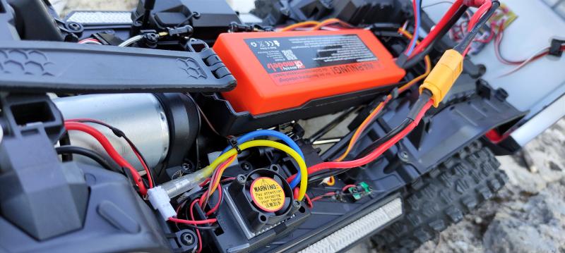 Regulátor odolný proti stříkající vodě (lze LiPo i NiMh aku), konektor XT60 + redukce na T-Dean