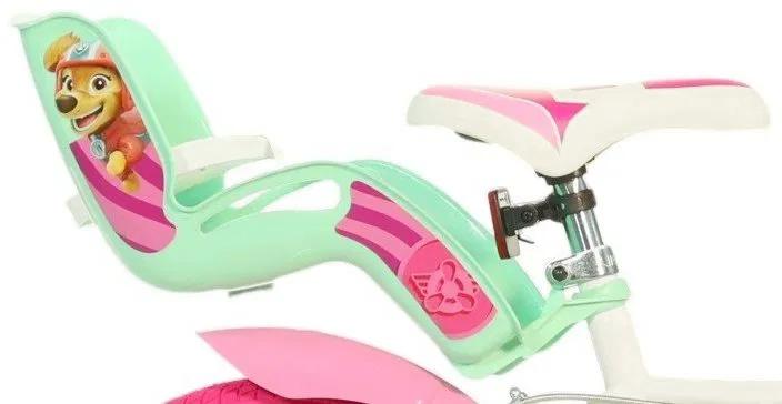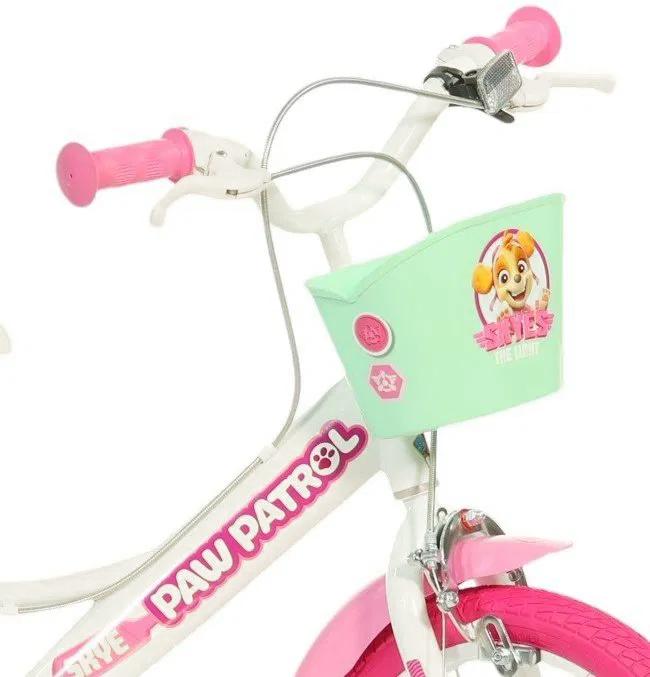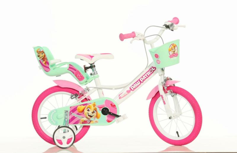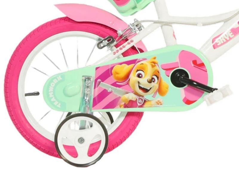 Dětské kolo Dino Bikes 144R-PW Tlapková patrola dívčí (Paw Patrol girl) 14 je určeno pro všechny fanoušky psích hrdinů z Tlapkové Patroly. Kolo má lakované ocelové ráfky 14" (14 palců = 35cm) a nafukovací pláště. Kolo je doporučeno pro výšku dítěte 95-115 cm a orientační věk dítěte 4-7 let. Maximální nosnost kola je 45 kg.Součástí balení jsou přídavná balanční kolečka, která jsou vhodná při učení rovnováhy na kole. Po získání jistoty při jízdě na kole je možné je kdykoliv odstranit a jezdit bez balančních koleček. Za sedlem se nachází sedačka pro panenky nebo plyšáky. Vpředu je košík, který slouží pro odkládání a převoz menších věcí nebo hraček.