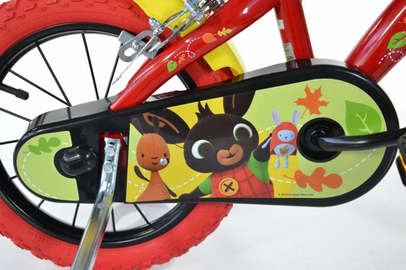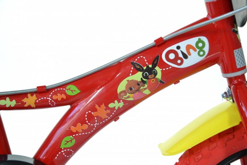 Detské kolo Dino Bikes 614-BG Králik Bing 14 je nádherné kolo pre deti, ktoré majú rady príbehy Králika Binga a jeho kamaráta Flopa. Kolo má lakované oceľové ráfiky 14" (14 palcov = 35cm) a nafukovacie plášte. Kolo je odporúčané pre výšku dieťaťa 95-115 cm a orientačný vek dieťaťa 4-7 rokov.
