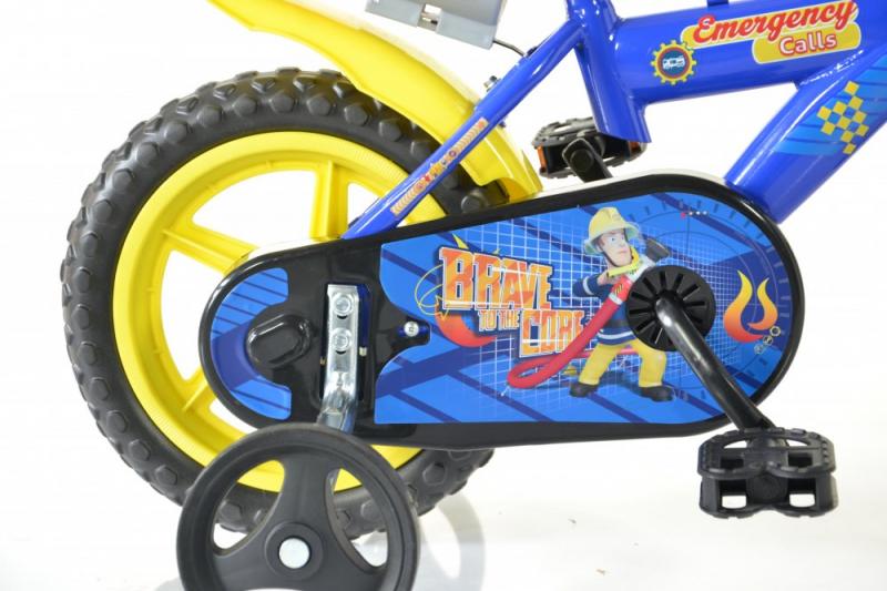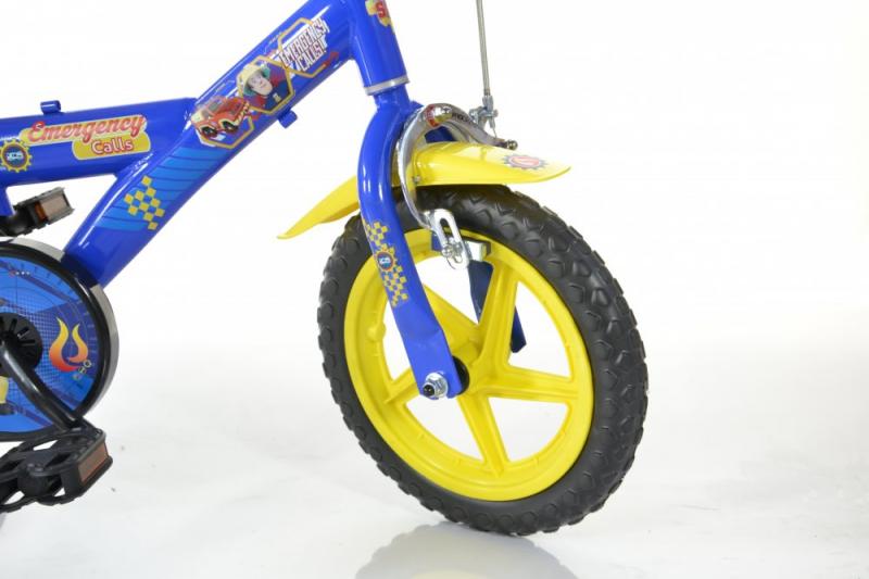 Dětské kolo Dino Bikes 123GL-SIP Požárník Sam (Fireman Sam) 12 je určeno pro všechny malé hasiče, kteří milují pohádky s Požárníkem Samem. Kolo má kompozitová paprsková kola 12" (palců = 30 cm), plné pláště s pěnovou výplní EVA, což vylučuje možnost defektu a zároveň se nemusí dofoukávat. Kolo je doporučené na výšku 87-110 cm a orientační věk dítěte 3-5 let.Kolo má bezpečnostní koncovku řidítek a držák s láhví na pití. Součástí balení jsou přídavná balanční kolečka, která jsou vhodná při učení rovnováhy na kole. Po získání jistoty při jízdě na kole je možné je kdykoliv odstranit a jezdit bez balančních koleček.
