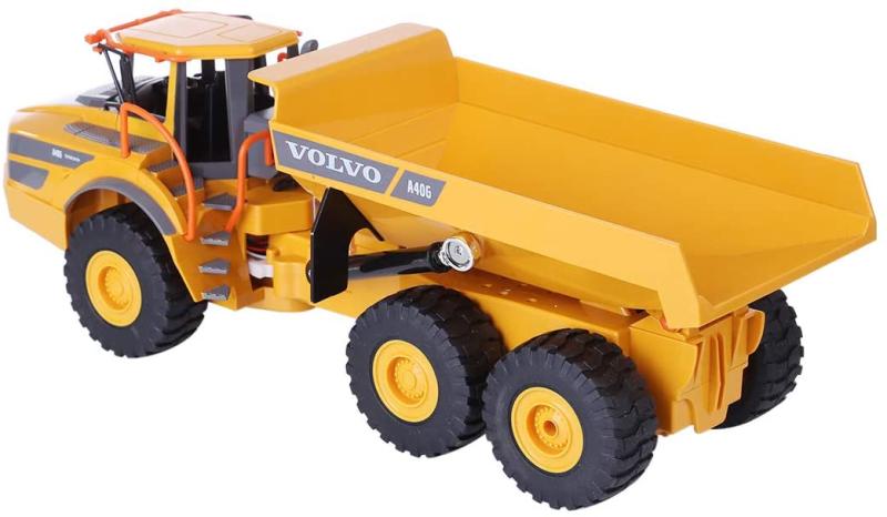 Tento licencovaný model dumperu Volvo A40G v měřítku 1:20 představuje detailně propracovaný stavební stroj s délkou 56 cm, který nabízí realistický zážitek z ovládání díky plně proporcionálním funkcím a pohonu všech šesti kol (6WD).