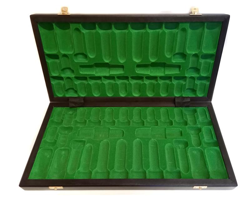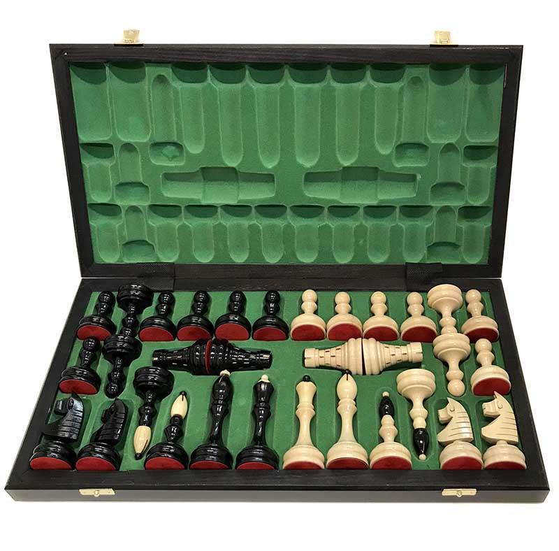 Díky dostatečné velikosti a barevnému zvýraznění střelců je předurčena jak pro mládež, tak pro veteránské hráče. Součástí dodávky je skládací dřevěná šachovnice s popisem o rozměru 48x48. Lze ji složit na rozměr 482x241x60 a dovnitř lze uložit všechny figurky.