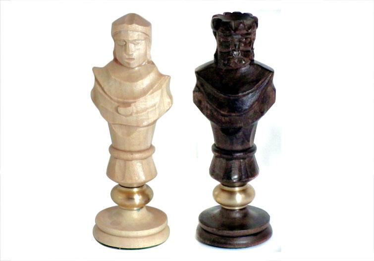 Figurky jsou vyřezané ze dvou kusů dřeva a spojeny mosaznou kuličkou, která slouží zároveň jako zátěž a díky tomu se s nimi velmi pěkně hraje.