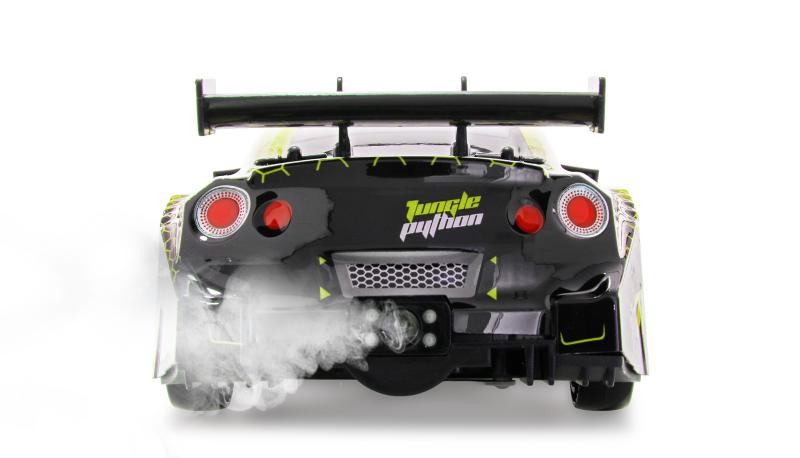 Tento model v měřítku 1:16 přináší zábavu a autentický zážitek z driftování vhodný především pro začátečníky a děti od 6 let. Díky kouřovému efektu vytvořenému jemnou vodní párou působí každý drift realisticky a efekt lze snadno zapnout pomocí dálkového ovladače. Naplnění modelu vodou je jednoduché a nevyžaduje použití oleje ani speciálních kouřových kapalin.