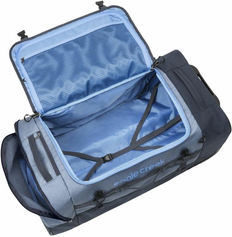 Tato všestranná a prostorná cestovní taška je navržena tak, aby zvládla náročné podmínky i dlouhé cesty. Disponuje objemem 124 litrů, který poskytuje dostatek místa pro veškeré vybavení. Vyrobena je z vodoodpudivého 800D Nylon Dobby a 1680D Ballistic Poly, což zaručuje vysokou odolnost proti oděru a spolehlivou ochranu obsahu. Taška umožňuje tři způsoby přenášení – můžete ji nosit jako batoh díky ergonomicky tvarovaným a prodyšným ramenním popruhům, vozit na dvou velkých kolečkách přizpůsobených i do náročného terénu, nebo ji zvedat pomocí čtyř robustních držadel umístěných po stranách a na přední straně.