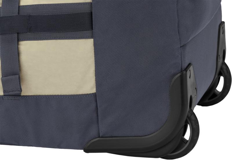 Dno je polstrované pěnou, která chrání uložené věci před nárazy a poškozením. Boční zpevněné úchyty pak umožňují upevnění tašky například ke střešnímu nosiči vozidla. Dvě odolná kolečka s ochranným krytem zajišťují hladký pojezd i na náročnějším terénu.