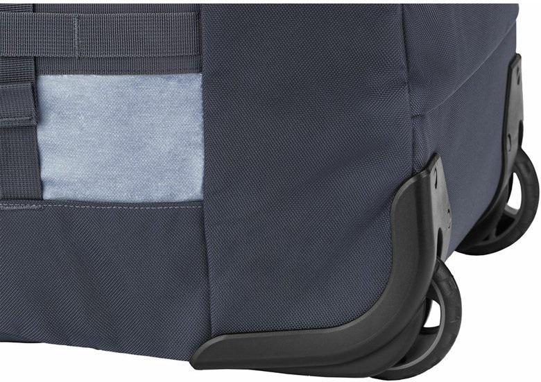 Taška je vybavena dvěma odolnými kolečky s ochranným krytem, které zajišťují hladký pojezd. Boční zpevněné úchyty umožňují upevnění zavazadla například ke střešnímu nosiči. Obdélníkový tvar je ideální pro efektivní ukládání a skladování.