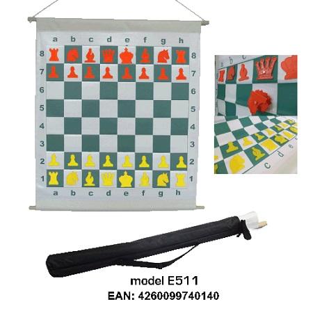 Šachové figúrky (kráľ 67x70x3mm) majú extra silné magnety, takže nespadnú a sú preto flexibilne použiteľné v akejkoľvek polohe. Doska je biela a zelená, šachové figúrky žlté a červené, aby bol zabezpečený dobrý kontrast a viditeľnosť. Taška poskytuje ideálnu a jednoduchú možnosť prepravy demonstračnej dosky.