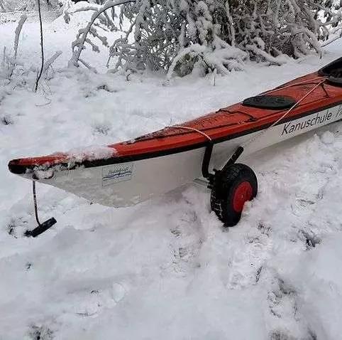 Vozík je vybavený elastickým upevňovacím popruhom s veľkými hákmi, ktoré držia kajak pevne a bezpečne bez nutnosti použitia dodatočných zaistovacích pásov. Kompaktný skladací dizajn umožňuje jednoduché uloženie v lodi alebo v batožinovom priestore. Vďaka šírke a stabilnej konštrukcii sa hodí aj na transport ťažších lodí.