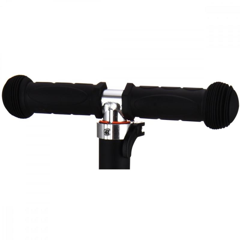 Brzda je umiestnená na nášľapnej plošine, čo umožňuje jednoduché a rýchle spomalenie alebo zastavenie kolobežky. Riadidlá je možné nastaviť do troch výškových úrovní (78, 84 a 90 cm od zeme), takže kolobežka porastie s dieťaťom a zabezpečí pohodlnú polohu pri jazde.