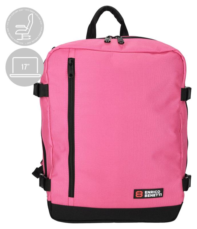 Praktický batoh Enrico Benetti Amsterdam v výrazné fuchsiové barvě je navržený tak, aby splnil potřeby cestovatelů i každodenních uživatelů. Díky rozměrům 40 x 30 x 20 cm se pohodlně vejde pod sedadlo v dopravních prostředcích, což oceníte při cestování letadlem, vlakem nebo autobusem.