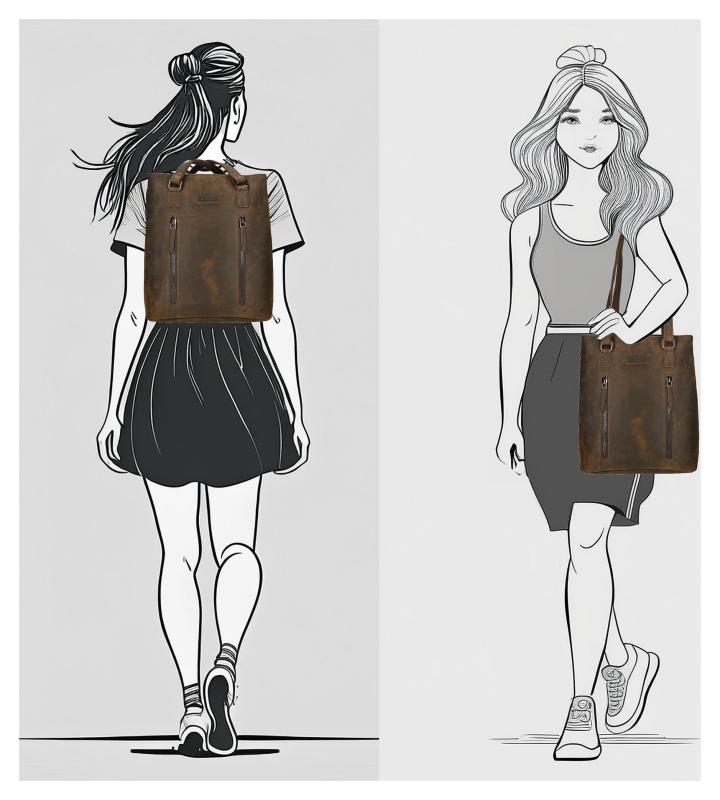 Batoh je vyrobený z prvotriednej kože, ktorá zaisťuje nielen luxusný vzhľad, ale aj dlhú životnosť a odolnosť materiálu voči bežnému opotrebovaniu. Vďaka nadčasovému dizajnu je možné batoh nosiť nielen na chrbte, ale aj ako kabelku, čo zvyšuje jeho univerzálnosť a prispôsobivosť rôznym situáciám.
