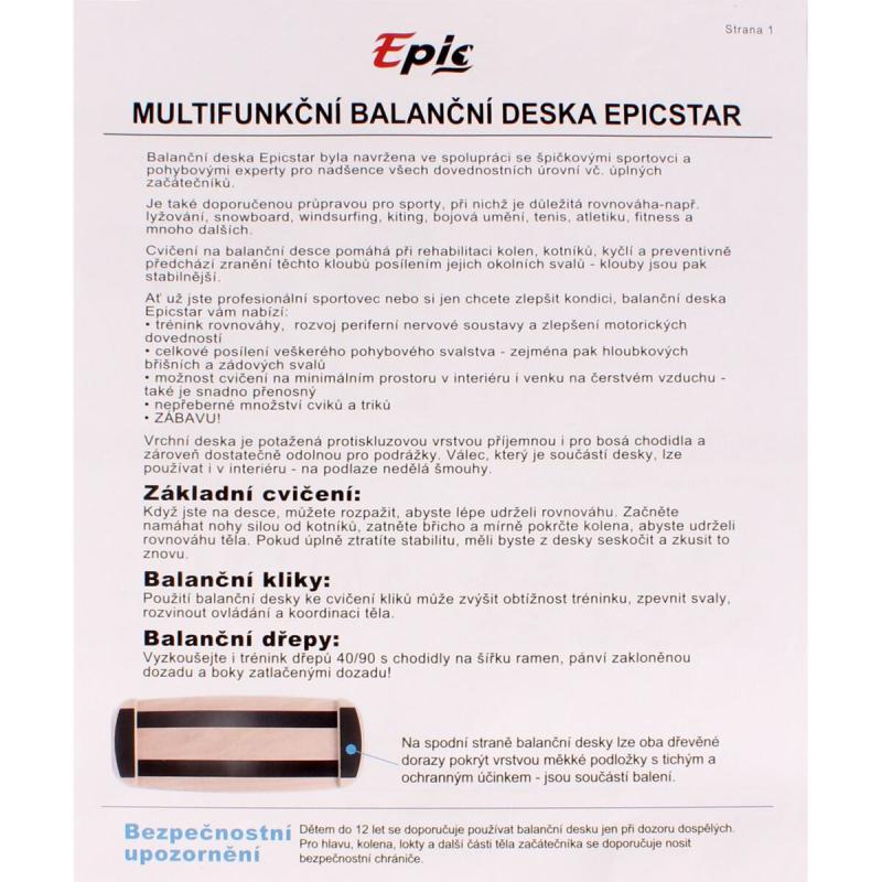 Multifunkční balanční deska Epicstar je výsledkem spolupráce s elitními sportovci a odborníky na pohyb. Ideální pro všechny, od úplných začátečníků až po zkušené sportovce. Je to výborná pomůcka pro sporty, kde je klíčová rovnováha - např. lyžování, snowboard, windsurfing, kiting, bojová umění, tenis, atletika, fitness a mnoho dalších. Cvičení na balanční desce Epicstar pomáhá při rehabilitaci kolen, kotníků, kyčlí a preventivně předchází zranění těchto kloubů posílením jejich okolních svalů - klouby jsou pak stabilnější. Zobrazit celý popis