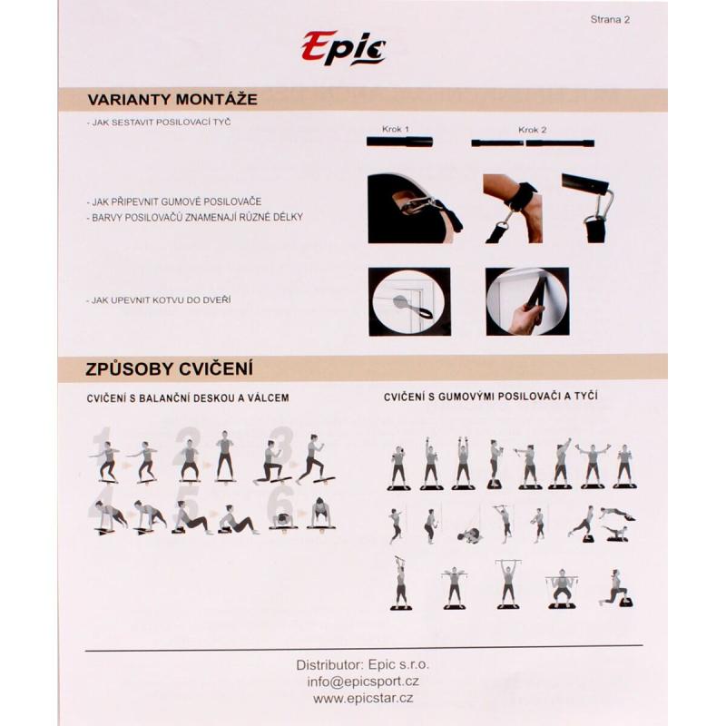 Součástí balení je posilovací tyč s gumovými expandery, kotva do dveří a poutko na kotník. Jde o moderní posilovací pomůcku umožňující systematické posilování všech svalových partií. Posilovací expandéry jsou skvělou univerzální pomůckou k posílení a protažení svalů a ke zvýšení výkonu při tahových cvičení. Gumu lze využívat jak k silovému tréninku s vlastní vahou, tak i k vytrvalostnímu tréninku. Tento set nabízí tři páry expandérů s různými stupni odporu.