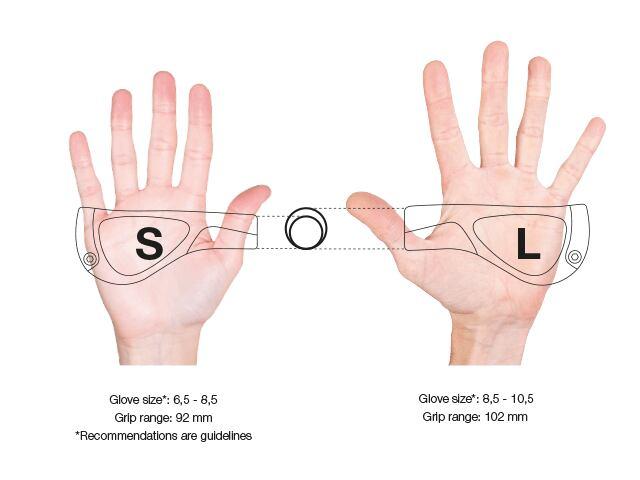Rozšířené křídlo podpírá dlaň a rovnoměrně rozkládá tlak, čímž přispívá k většímu pohodlí. Čtyřprstový roh z plně pogumovaného materiálu nabízí další úchopovou pozici a lepší páku při stoupání. Oba prvky, grip i roh, lze nastavit nezávisle, což umožňuje přizpůsobení přesně podle velikosti ruky, stylu jízdy a osobních preferencí.
