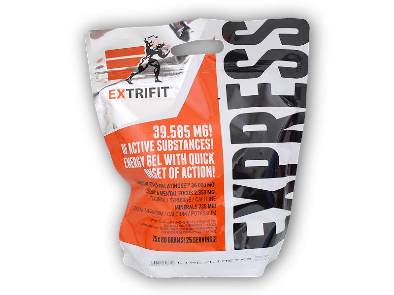 Express Energy Gel 80gExpress Energy Gel je unikátní energetizující produkt od Extrifitu, který sportovci používají k okamžitému dodání energie před tréninkem a při tréninku. Jdete na trénink unavení po dlouhém dni v práci? Chybí Vám energie v průběhu delší fyzické aktivity? Express Energy Gel Vám okamžitě vrátí energii do sportovního i mentálního výkonu díky vyváženému poměru tří druhů sacharidů, obsahu energizérů, stimulantů a vyváženému komplexu minerálních látek. A to vše v kompaktním balení hotového gelu, který je připravený k okamžité konzumaci.