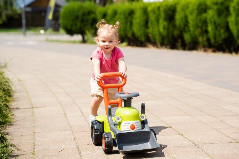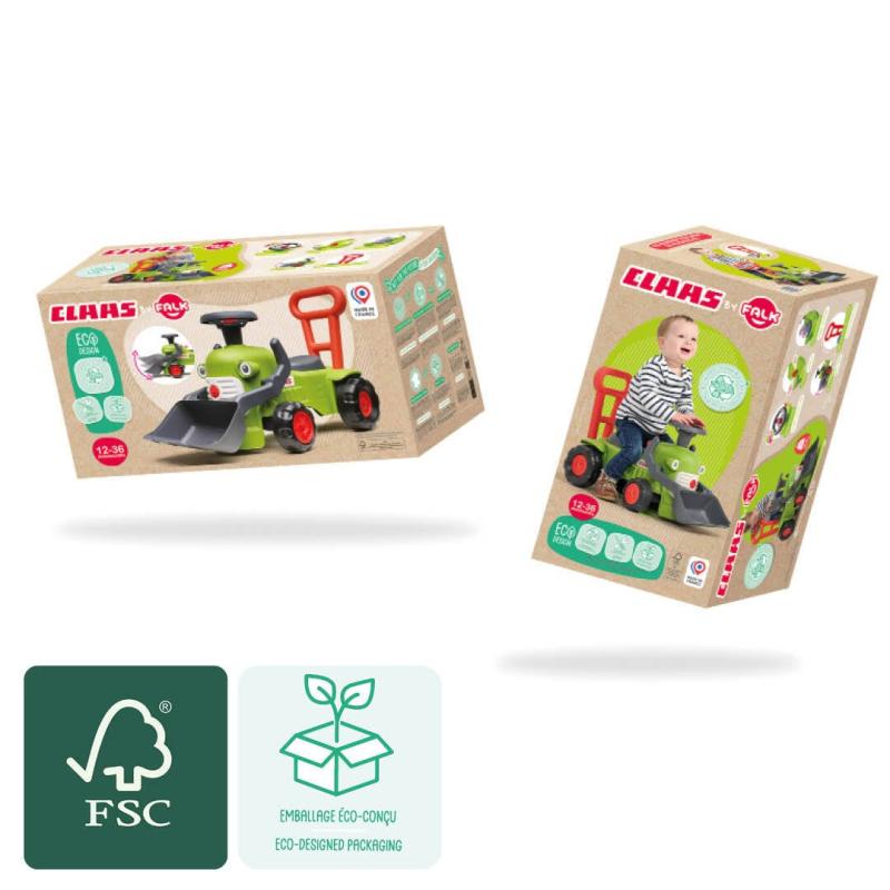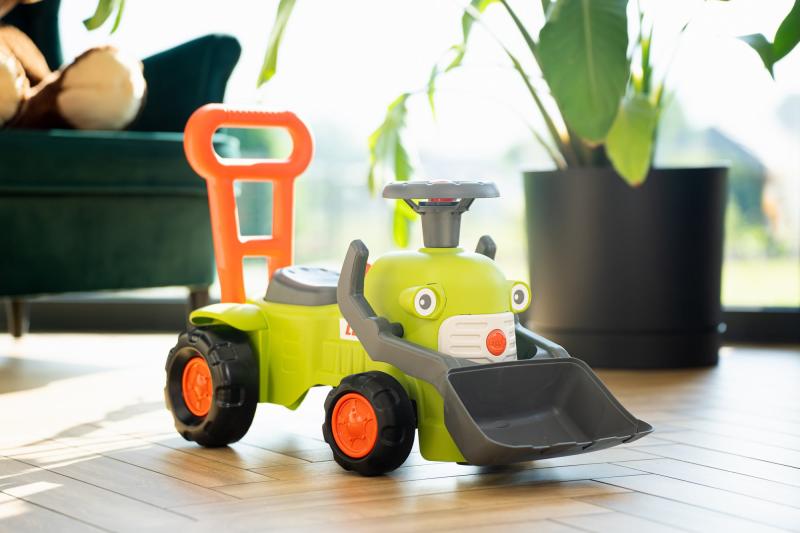 Tento malý traktor Claas s čelným nakladačom je ideálnou pomôckou pre deti od 12 mesiacov, ktoré začínajú objavovať prvé krôčiky. Vďaka integrovanej rukoväti slúži tiež ako chodítko, ktoré pomáha s udržaním rovnováhy a podporuje rozvoj motoriky. Farebné prevedenie a smerový volant s klaksónom stimulujú detskú jemnú i hrubú motoriku a zároveň prinášajú zábavu počas hry.