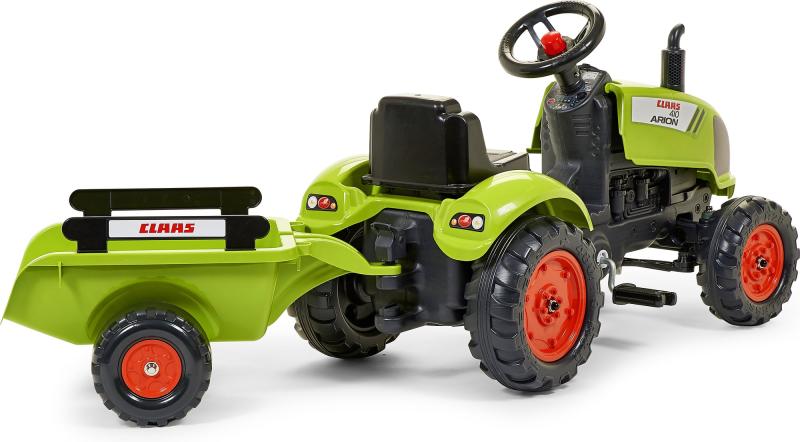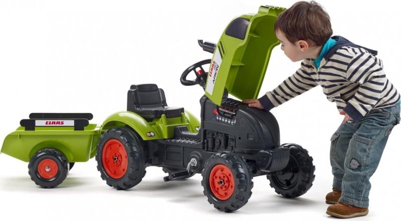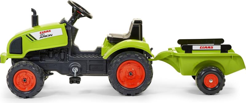 Falk Šliapací traktor 2041C Claas Arion s vlečkou a otváracou kapotou