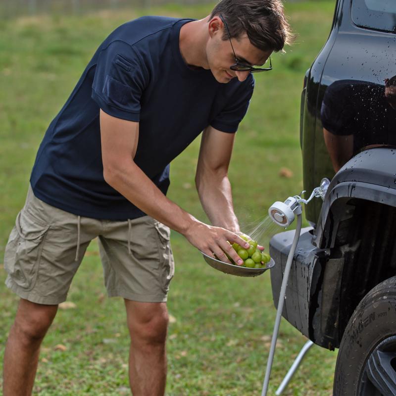 Sprcha je vhodná pre najrôznejšie vonkajšie činnosti: sprchovanie v prírode, umytie auta, vysprchovanie psa, na cestách do prírody, na dovolenke pri mori, na bicykli alebo na rybách.