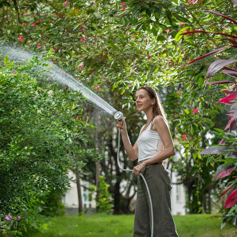 Prenosná sprcha má dva režimy: energizujúci silný prúd a jemný úsporný prúd.