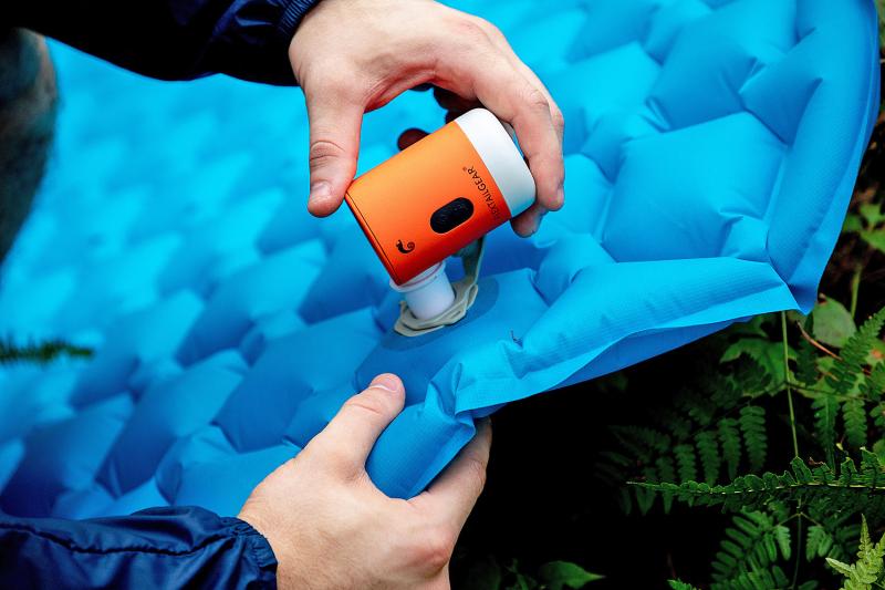 Malé, ale výkonné foukadlo/pumpa na nafukování nejrůznějšího outdoorového vybavení. Současně funkce svítilny a power banky.