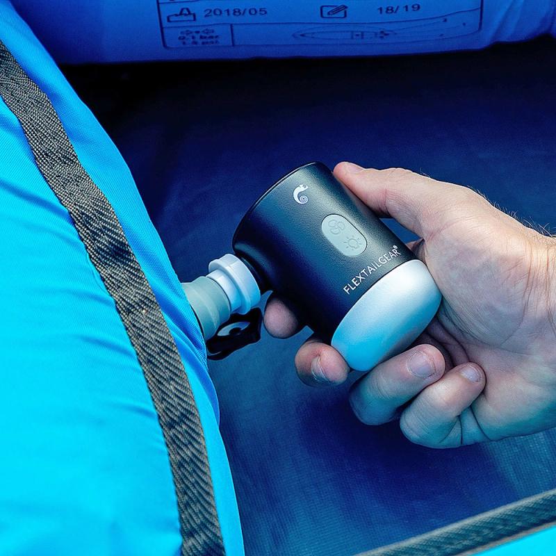 Malé bateriové foukadlo je praktickým pomocníkem při nafukování menších lodí, packraftů, matrací, dětských bazénů, hraček a dalšího nafukovacího outdoorového vybavení. Má výdrž minimálně 30 až 60 minut a je voděodolné (IP55), takže se nemusíte obávat tryskající vody nebo prachu. Výhodou jsou další dvě funkce, foukadlo může sloužit také jako svítilna a power banka.