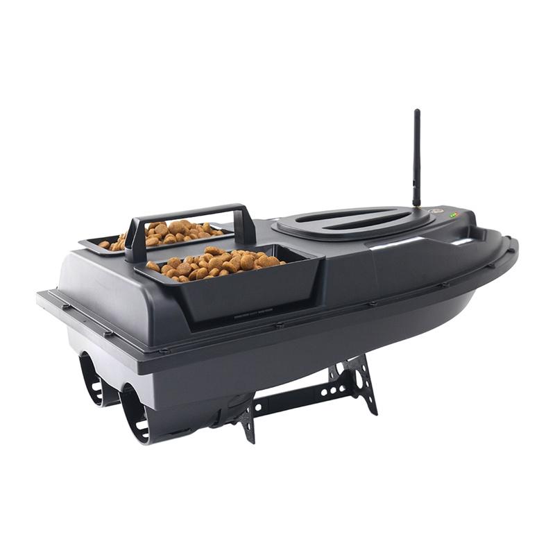 Člun je vybaven dvěma nezávisle ovládanými zásobníky s celkovou kapacitou 1,5 kg, což umožňuje přesné dávkování návnady nebo kombinaci různých druhů. Elektromagnetické klapky se otevírají tiše, čímž minimalizují rušení ryb v okolí. Robustní rukojeť usnadňuje přenášení člunu jednou rukou, což zvyšuje komfort při manipulaci.