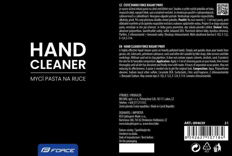 Dodání produktu Force Čistič rukou Rasant Profi, pasta, 2 l