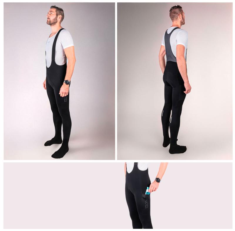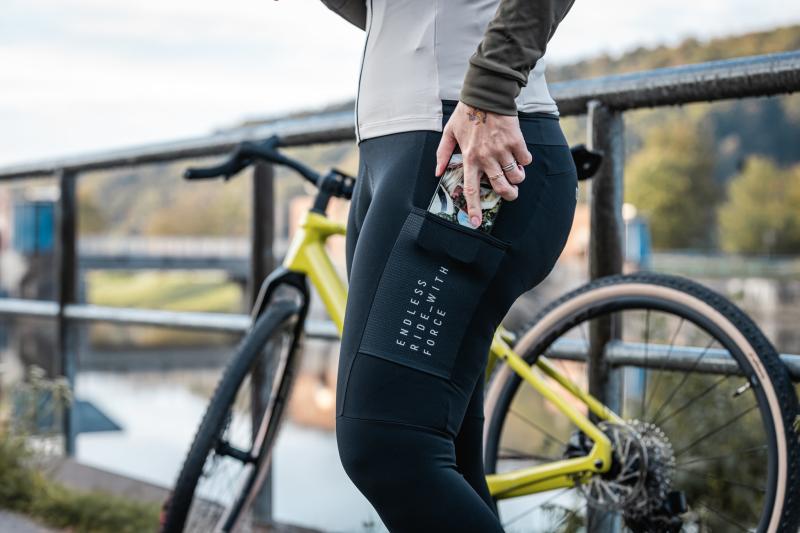 Zateplené cyklokalhoty s elastickými šráky, praktickými kapsami a speciální dvouvrstvou vložkou pro jízdu při teplotách od 5 do 15 °C.