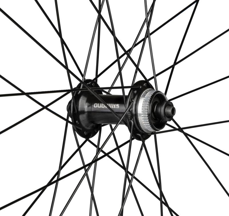 Toto přední kolo je vybaveno nábojem SH TX505 určeným pro CENTER LOCK brzdové kotouče, který zajišťuje spolehlivý a přesný chod díky kuličkovým ložiskům. Osa má rozměry 9 x 108 x 100 mm a součástí balení je rychloupínák pro snadnou montáž a demontáž kola.